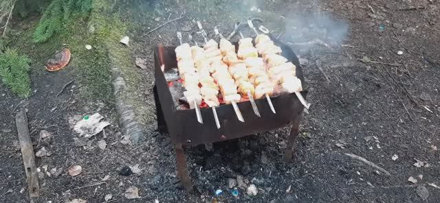 Шашлык из кальмаров в зимнем лесу