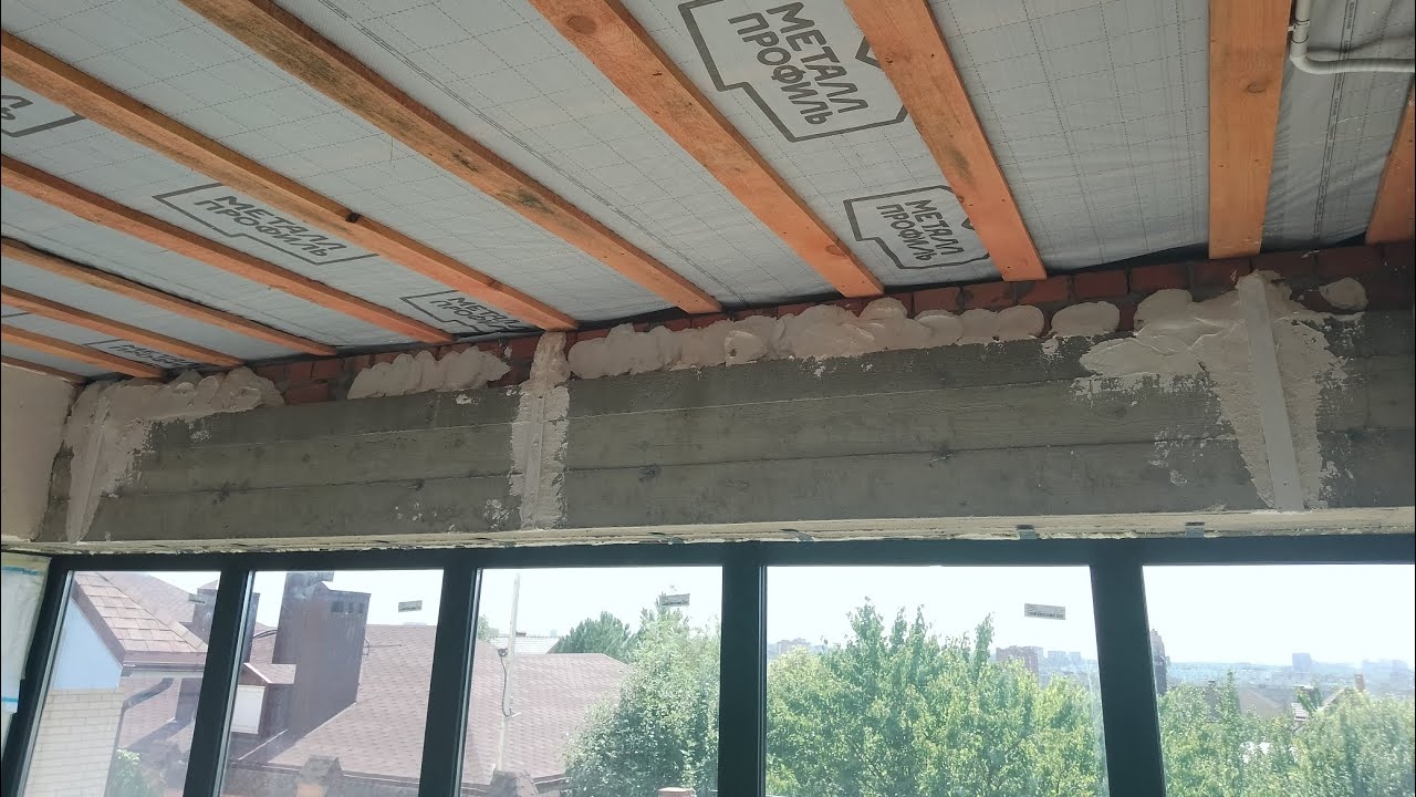 Штукатурка бетонной перемычки -армопояса.Растворные маяки .
