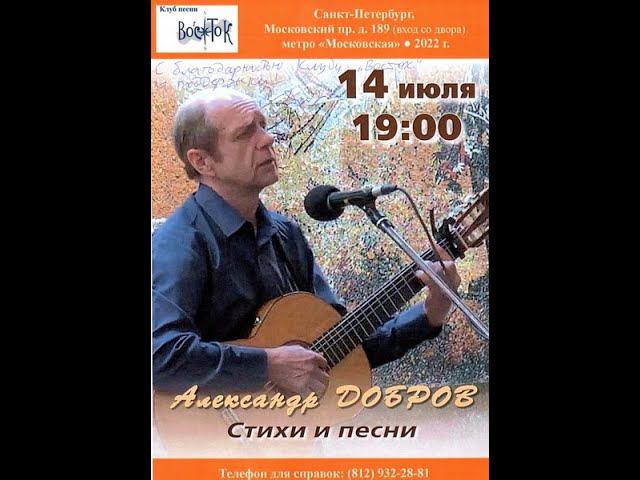 Александр Добров. Стихи и песни. Клуб песни «Восток». 14 июля 2022 г. Санкт-Петербург, Московский пр., д. 189. Афиша - Елена Адрианова. Видеозапись - Алла Левитан. Запись звука - Геннадий Демин.