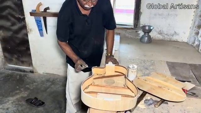 Пакистан. Делаем гитару. Ручная работа в частной столярной мастерской.