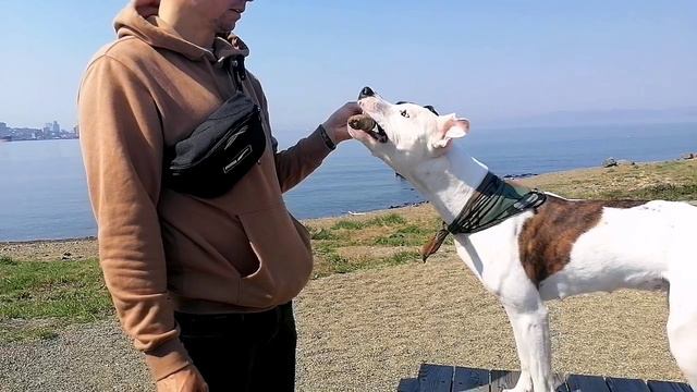 прогулка на на море #amstaff #pitbull #dog #sea