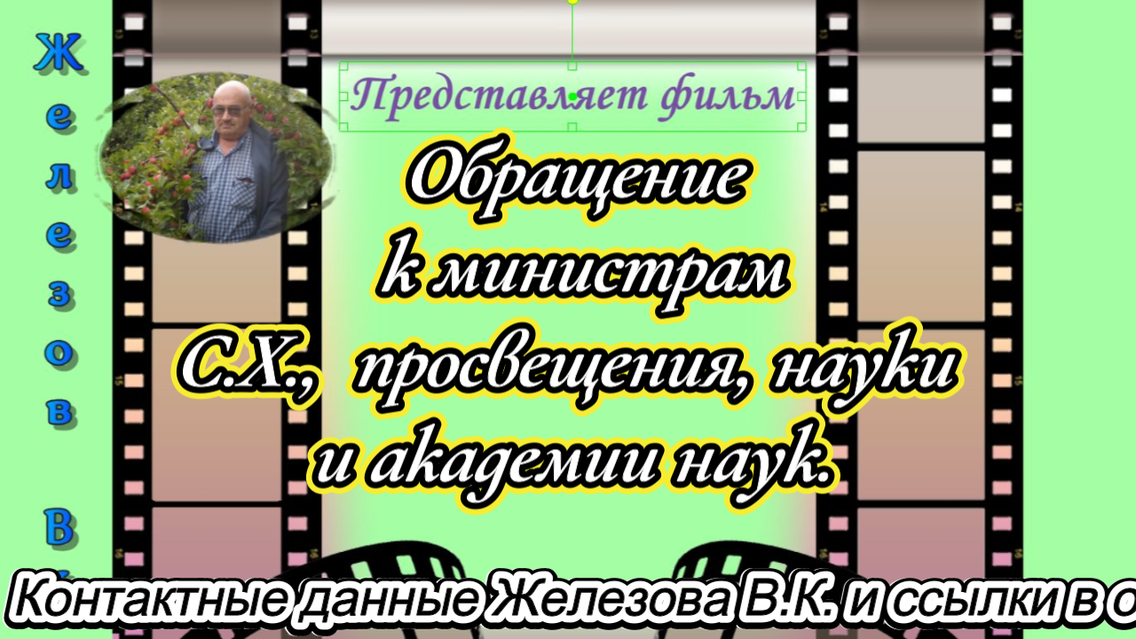 В.Железов. Обращение к министрам С.Х., просвещения, науки и академии наук.