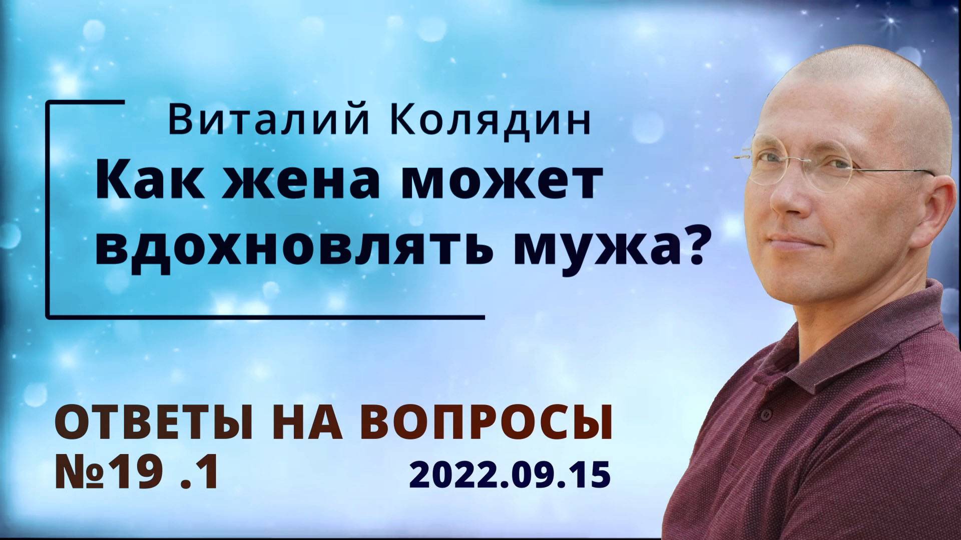 Ответы на вопросы №19.1 Как жене вдохновлять мужа. Виталий Колядин. 2022.07.15