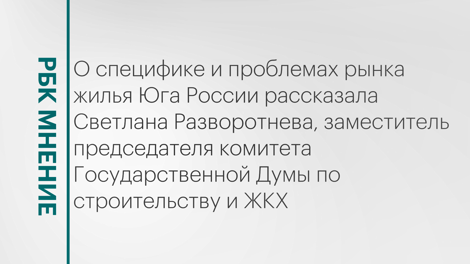 О специфике и проблемах рынка жилья Юга России рассказала Светлана Разворотнева, заместитель председателя комитета Государственной Думы по строительству и ЖКХ. Подписывайтесь на нас в социальных сетях: ВКонтакте: https://vk.com/rbcyug Telegram: https://t.me/rbc_krasnodar, https://t.me/rbcrostov, https://t.me/rbc_kavkaz Подпишитесь на канал РБК Юг, чтобы смотреть новые выпуски первыми!