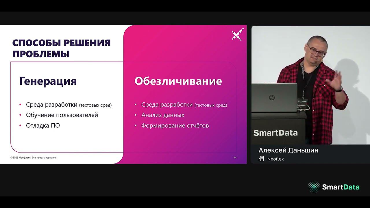Neoflex стал партнером конференции SmartData, посвященной инженерии данных. Стенд компании посетили более 200 человек. Эксперты представили участникам платформу Neoflex Dognauts для управления полным жизненным циклом ML-моделей, рассказали о технологиях и проектах в области ML, AI и Big Data, а также вакансиях и возможностях для карьерного роста в компании. На мероприятии выступил Алексей Даньшин, аналитик Neoflex, с докладом на тему «Методы обезличивания данных». Эксперт отметил актуальную проблему утечки данных и способы их защиты. В частности, подробно остановился на том, какие существуют методы обезличивания данных и как их применять. Спикер продемонстрировал модель оценки рисков данных, а также рассмотрел метрики данной оценки и отметил важность процесса профилирования – идентификации конфиденциальных данных. Кроме того, эксперт рассказал о генераторе данных, который был разработан в Neoflex: он способен сохранять связи между таблицами, оставляя данные консистентными. Также Алексей провел обзор доступных на рынке инструментов обезличивания данных и подробнее рассказал о разрабатываемом решении Neoflex MaskIT. В нём будет использоваться ML-модель для профилирования данных и определения домена, к которому их необходимо отнести, а также возможность настройки процесса обезличивания под задачи заказчика.