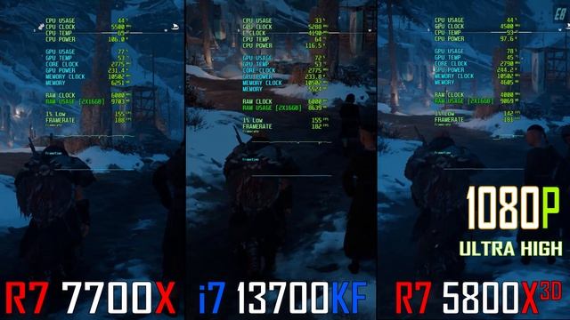 RYZEN 7 7700X vs INTEL i7 13700KF vs RYZEN 7 5800X3D || RTX 4090 @ 24GB // PC GAMES BENCHMARK TEST // 1080P || #ryzen77700x #i713700k #ryzen75800x3d #rtx4090 SYSTEM :- OS Windows 10 pro CPU RYZEN 7 7700X MOBO MSI MEG X670E ACE CPU INTEL i7 13700KF MOBO Asus ROG Strix Z790 - E Gaming CPU RYZEN 7 5800X3D MOBO Asus ROG Strix X570 E Gaming WIFI COOLER CORSAIR ICUE H150I ELITE GPU Asus TUF Gaming RTX 4090 24GB RAM Corsair Dominator Platinum RGB 32GB DDR5 6000MHz RAM G.SKILL TRIDENT Z 32GB DDR4 4000MHz SSD Samsung 980 PRO 2TB PCIe 4.0 NVMe M.2 HDD WD Blue 4TB Desktop Hard Disk Drive PSU CORSAIR RMX SERIES RM1000X 1000 WATT THANK YOU FOR WATCHING-- Your support is very important, please like and subscribe to the channel. Теги: benchmark test,fps test,intel vs amd,amd vs nvidia,radeon vs geforce,1080p gameplay,1080p benchmark,1440p gameplay,1440p benchmark,ryzen,1080p gaming,1080p gaming benchmark,1440p gaming benchmark,exploring benchmark,explore benchmark,benchmark,ryzen 7 7700x,7700x,7700x vs 13700k,13700k vs 7700x,5800x3d,7700x vs 5800x3d,5800x3d vs 7700x,13700k vs 5800x3d,5800x3d vs 13700k,rtx 4090,4090,intel i7 13700k,i7 13700k,13700k,ryzen 7 5800x3d