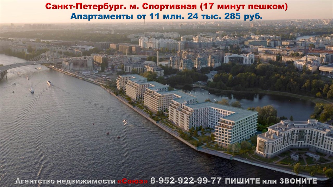 Агентство недвижимости «СОЮЗ» Покупайте: апартаменты в Санкт-Петербурге. Ремесленная ул., д.17 - 3. м. Спортивная (17 минут пешком) Агент по новостройкам: 89529229977 (WhatsApp) Цены на апартаменты точно такие же как и у застройщика. Апартаменты продаются БЕЗ РИЭЛТОРСКОЙ КОМИССИИ !!!. Ст. квартиры: от 11 млн. 024 тыс. 285 руб. Ежемесячный платеж: 64 633 руб. при ставке 8% Площадь общая: 19,81 м2 - 34,31 м2 1к. квартиры: от 13 млн. 936 тыс. 851 руб. Ежемесячный платеж: 81 709 руб. при ставке 8% Площадь общая: 27,37 м2 - 50,52 м2 2к. квартиры: от 34 млн. 390 тыс. 511 руб. Ежемесячный платеж: 201 624 руб. при ставке 8% Площадь общая: 56,1 м2 - 79,2 м2 3к. квартиры: от 62 млн. 610 тыс. 738 руб. Ежемесячный платеж: 367 073 руб. при ставке 8% Площадь общая: 84,17 м2 - 128,42 м2 Срок сдачи: 2 кв. 2027 Срок выдачи ключей: 3 кв. 2027 Договор: ДДУ Тип дома: монолитный Тип отделки: отделка "под ключ" Парковка: подземная Потолки: 3 м. Преимущества: Благоустроенная территория. Развитая инфраструктура Паркинг. Видовые квартиры. Панорамный ресторан на крыше. Описание комплекса: Премиальный комплекс резиденций — это 8 секций, которые вырастут вдоль набережной Малой Невы единым геометричным силуэтом и элегантно впишутся в полотно современной застройки Петровского острова. Строящийся на одном из красивейших островов Петербурга, комплекс будет со всех сторон окружён водой — Малой Невой на юге, тихим Петровским прудом на севере, что подарит ощущение жизни на собственном уединённом острове и откроет виды на воду абсолютно из всех квартир. Дизайн лобби, холлов и апартаментов продолжает эстетику архитектуры комплекса. Уютный скандинавский минимализм и отсылки к японской лаконичности намекают на близость природы, погружая в атмосферу гармонии, эстетики и абсолютного комфорта. Современный дизайн как он есть, все апартаменты передаются с высококачественной авторской отделкой, полной дизайнерской меблировкой, оборудованными кухнями и оформленными ванными комнатами. Интерьеры общественных пространств продолжат стиль комплекса — самодостаточный, элегантный и благородный. Вдохновившись живописной локацией и общей философией комплекса, застройщиком был создан дизайн-проект, сотканный из натуральных материалов, естественного света и выразительных акцентов. Настоящей жемчужиной и главным элементом дизайн-концепции станет «Небесная гостиная» — фантастическое пространство с панорамным рестораном на крыше комплекса. Помимо планировок и эксклюзивных форматов недвижимости, комплекс включает приватность территории, премиальный сервис и собственную авторскую инфраструктуру. Благоустроенная прогулочная набережная вдоль реки и променад у пруда, большой и малые зелёные парадные дворы, спортивные и детские площадки, велодорожки и причал для яхт, уединённые пространства и всесезонные беседки для отдыха и чтения на свежем воздухе.