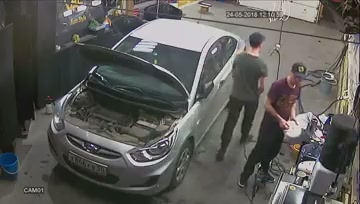 Видеокамера, установленная в автомастерской на северо-западе Москвы, запечатлела драматичный момент автокатастрофы. Один из слесарей во время удара отошёл в сторону, в тот момент, как его коллега был отброшен тумбой, что и спасло молодого человека от тяжёлых последствий. #авария #дтп #внезапно #гараж #повезло