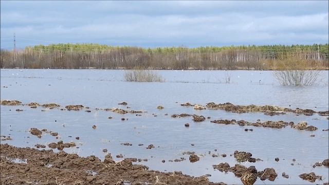 Вода прибывает. Архангельская область река Моша посёлок Шалакуша. Выходит из берегов и пошла в разлив.
