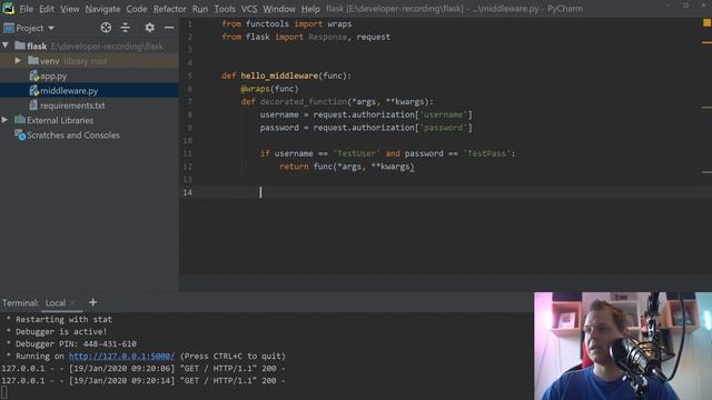 Working with flask as web application or restful api its very nice, and its open up for many different cases, the good thing with flask its very simple to start with in python and over time you can allways learn more about python and flask. Working with middleware in flask can in some case be usefull to defined a middleware to a single @app.route endpoint, if you have both guest and login area in your application, so in this video i will learn you how to working with middleware in flask and how to use middleware in custom @app.route endpoints. ??? SUBSCRIBE to get more great videos from me ??? https://www.youtube.com/c/ParisNakitaKejser?sub_confirmation=1 ? Community ? Discord: https://discord.gg/6tcWjxV Instagram: https://www.instagram.com/parisnakitakejser/ Facebook: https://www.facebook.com/paris.n.kejser ? Donate ?: https://www.patreon.com/parisnakitakejser Github: profile: https://github.com/parisnakitakejser python flask repo: https://github.com/parisnakitakejser/video-tutorial-python-code/tree/master/Flask python flask video code repo: https://github.com/parisnakitakejser/video-tutorial-python-code/tree/master/Flask/13-working-with-middleware-for-specific-route