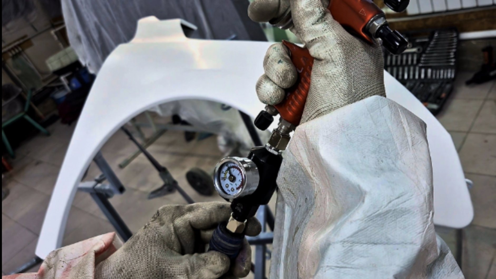 Нанесение базовой эмали на деталь