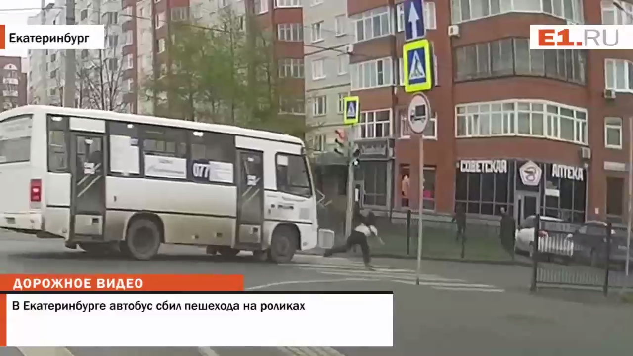 В Екатеринбурге на перекрёстке улиц Фурманова и Чапаева произошло ДТП – водитель автобуса № 077 сбил пешехода, который переезжал дорогу на роликах. На записи с регистратора проезжавшего мимо автомобиля видно, что молодой человек дождался, когда загорится зелёный свет, и начал переходить дорогу, двигаясь на роликах. В этот момент автобус, видимо, пытаясь проскочить перекрёсток, на скорости сбивает пешехода – молодой человек от удара отлетел от автобуса. Но после удара он сам встал и пошёл. #ролики #автобус #екатеринбург