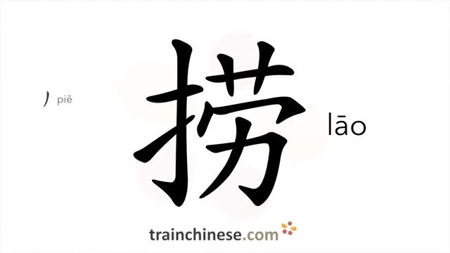 捞 (lāo) fishing; to fish up, drag for; scoop unp gain