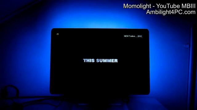 For more information about Ambilight for PC's visit www.ambilight4pc.com. On Ambilight4PC several systems like Philips AmbX, Momolight and Adalight are reviewed on quality with video playback, games, music and so on. This video demonstrates color effects of the Momolight system using Boblight during Youtube video playback of the trailer of Man in Black III (MBIII).