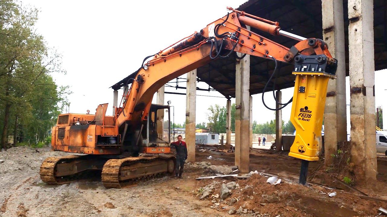 С гидромолотом Delta F35S экскаватор ЭО-5126 демонтирует железобетон в лёгкую! Разрушение старых конструкций быстро и эффективно! http://gidromolot.tradicia-k.ru/product/gidromolot-delta-f-35s-shumozaschitnyy-korpus/ Сервисный центр Компании "Традиция-К" обеспечит монтаж гидромолота в любой точке РФ!