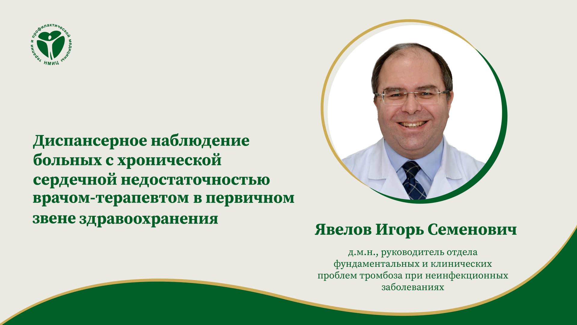 «Диспансерное наблюдение больных с хронической сердечной недостаточностью врачом-терапевтом в первичном звене здравоохранения», лекция от 28.05.2025. Лектор: Явелов Игорь Семенович – д.м.н., профессор, руководитель отдела фундаментальных и клинических проблем тромбоза при неинфекционных заболеваниях ФГБУ «НМИЦ ТПМ» Минздрава России.
