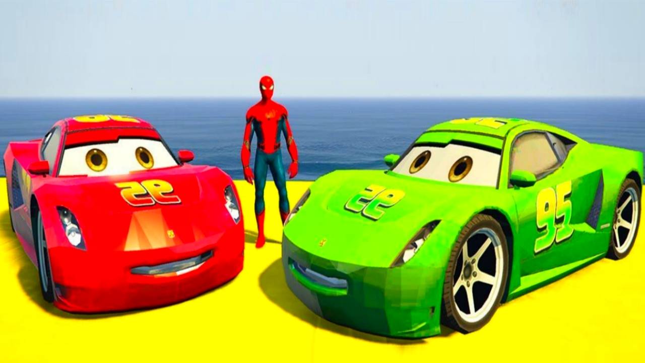 Машинки Молния Маккуин и Человек-Паук. Мультфильм для детей с детскими песенками.