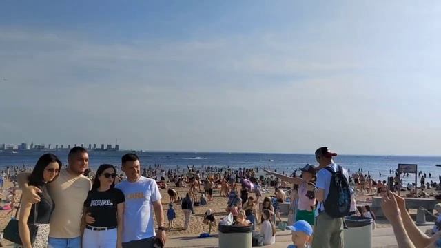 Парк 300-летия Санкт-Петербурга, стадион "Зенита", самое высокое здание Европы - Лахта Центр, огромные исторические российские флаги. Пляж Финского залива.
