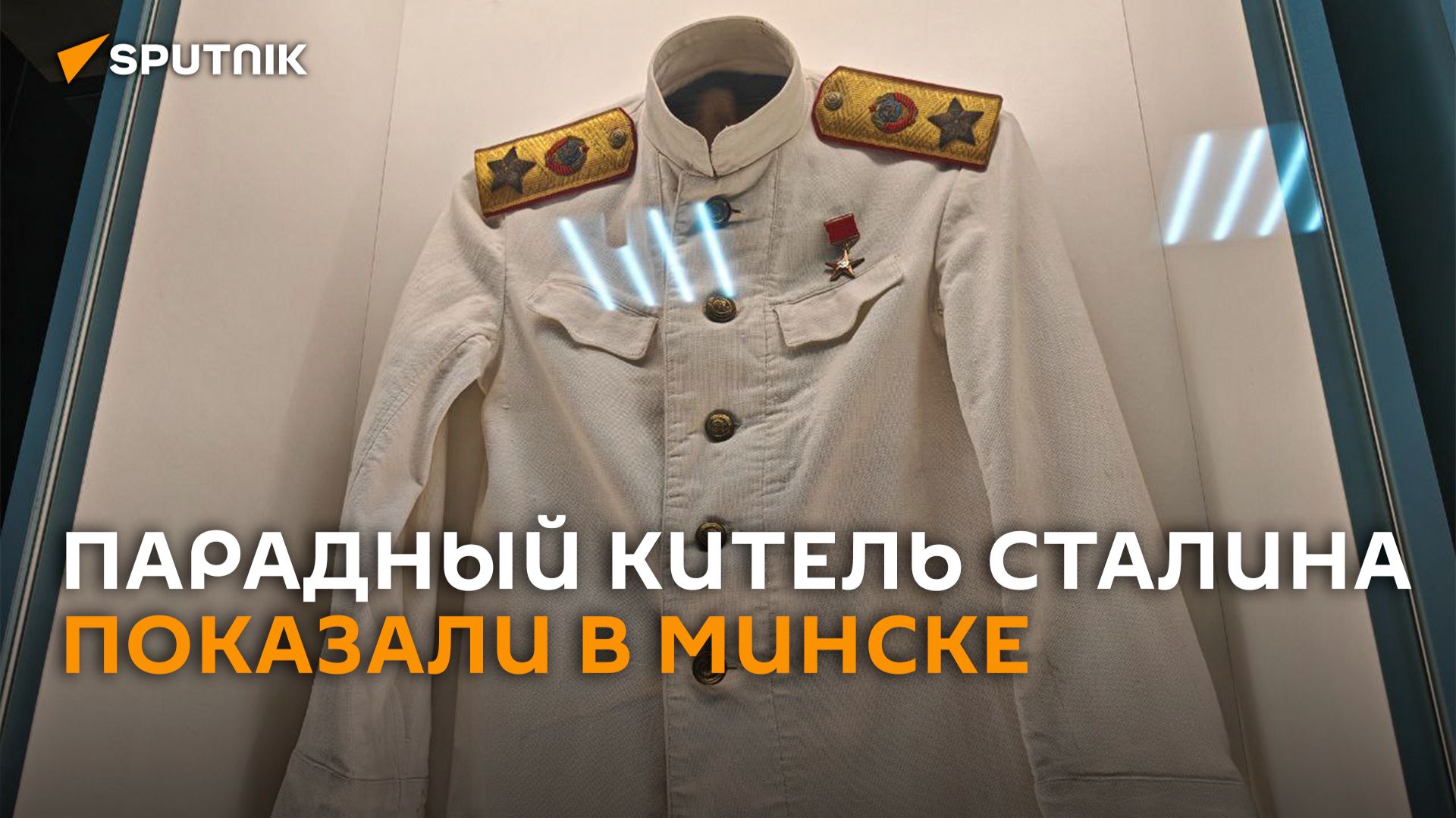 Белый китель генералиссимуса выставлен в Музее истории Вооруженных Сил Беларуси и является единственным прижизненным экспонатом Сталина в белорусских музеях. Его в Минск передала белорусская диаспора в России, сообщил председатель Федеральной национально-культурной автономии «Белорусы России» академик Сергей Кандыбович, передает корреспондент Sputnik. . «В Музей истории Вооруженных сил Беларуси мы передали парадный мундир генералиссимуса Сталина. До этого не было его личных вещей в белорусских музеях. Сейчас он экспонируется в музее, который находится в Доме офицеров»,- сказал он.