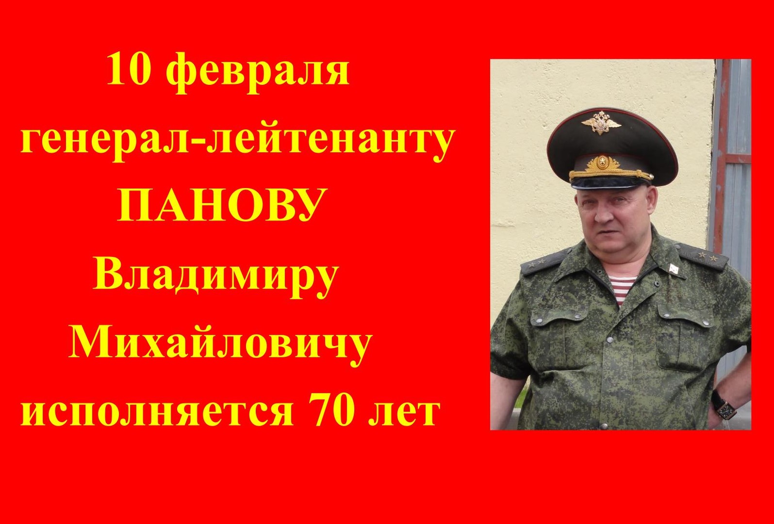 10 ФЕВРАЛЯ ГЕНЕРАЛУ ПАНОВУ ИСПОЛНЯЕТСЯ 70 ЛЕТ. С ДНЁМ РОЖДЕНИЯ, ТОВАРИЩ ГЕНЕРАЛ !