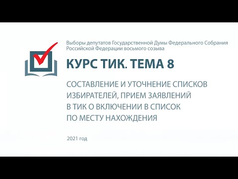Списки избирателей составляются ТИК отдельно по каждому избирательному участку по форме, установленной Центральной избирательной комиссией Российской Федерации. Как правильно составить списки избирателей, принять и оформить заявления о включении в список избирателей по месту нахождения, учесть данные, поступающие в период уточнения списков, – вы узнаете из этого ролика. Подробная информация по данной теме содержится в составе курса ТИК в разделе "Обучение" на сайте РЦОИТ при ЦИК России: http://www.rcoit.ru/edu2021/?c=tik&t=8. По этой ссылке можно воспользоваться полным текстом лекции, презентацией, списком нормативных актов и ответить на вопросы для самоконтроля. Будем рады обратной связи – оставляйте комментарии к этому ролику, задавайте вопросы. ➤ Календарный план выборов: https://clck.ru/VwSas ➤ Больше материалов на сайте: https://rcoit.ru ➤ Наш канал в Telegram: https://t.me/electorium