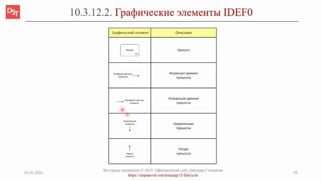 Словарь «Термины и определения корпоративных информационных систем и ERP-систем». Ключевые слова: графические нотации, IDEF0, SADT, функциональное моделирование, процесс, ограничения, ресурсы. Ссылка: https://stepanovd.com/training/15-lifecycle