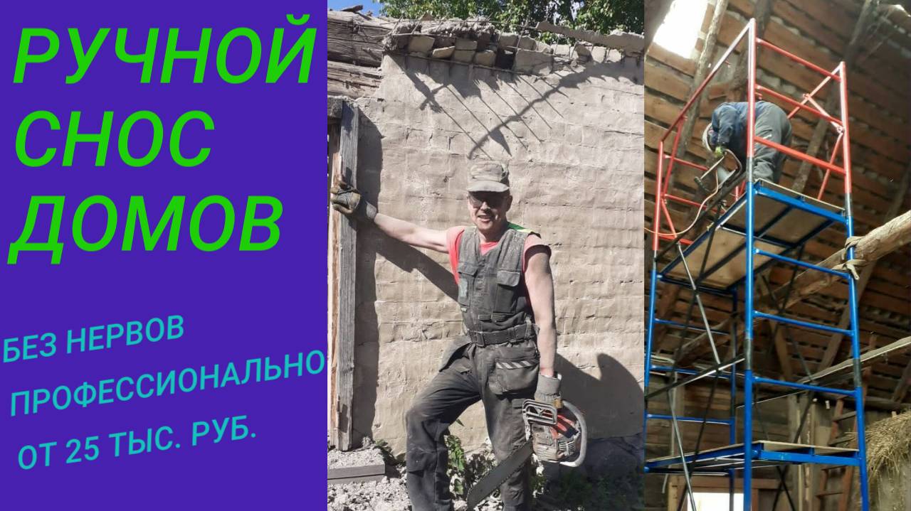 Ручной снос деревянных построек бывает необходим при ряде условий: близкое расположение других строений на участке, нежелание заказчика использовать спецтехнику, необходимость сохранения элементов ландшафта участка (посадки, клумбы, дорожки). Мы предлагаем вам избавиться от старых построек с бережным отношением к вашему участку и саду. Санкт-Петербург, Ленинградская область (до 100 км от Гатчины или до 100 км от КАД). Подробнее на нашем сайте www.сносдомовленинградскаяобласть.рф +7 911 998 51 23 Группа ВК: https://vk.com/demontazhdomov Личная страница ВК: https://vk.com/andryboris Телеграмм-канал: https://t.me/snosdemontazhpaytinich WhatsApp (только для сообщений): https://wa.me/79119985123?text=Привет!; Канал Youtube: https://www.youtube.com/channel/UCXjBmKoXBadH7cnuNIeI.. Электронная почта (старо, но ещё работает): belena-san@bk.ru