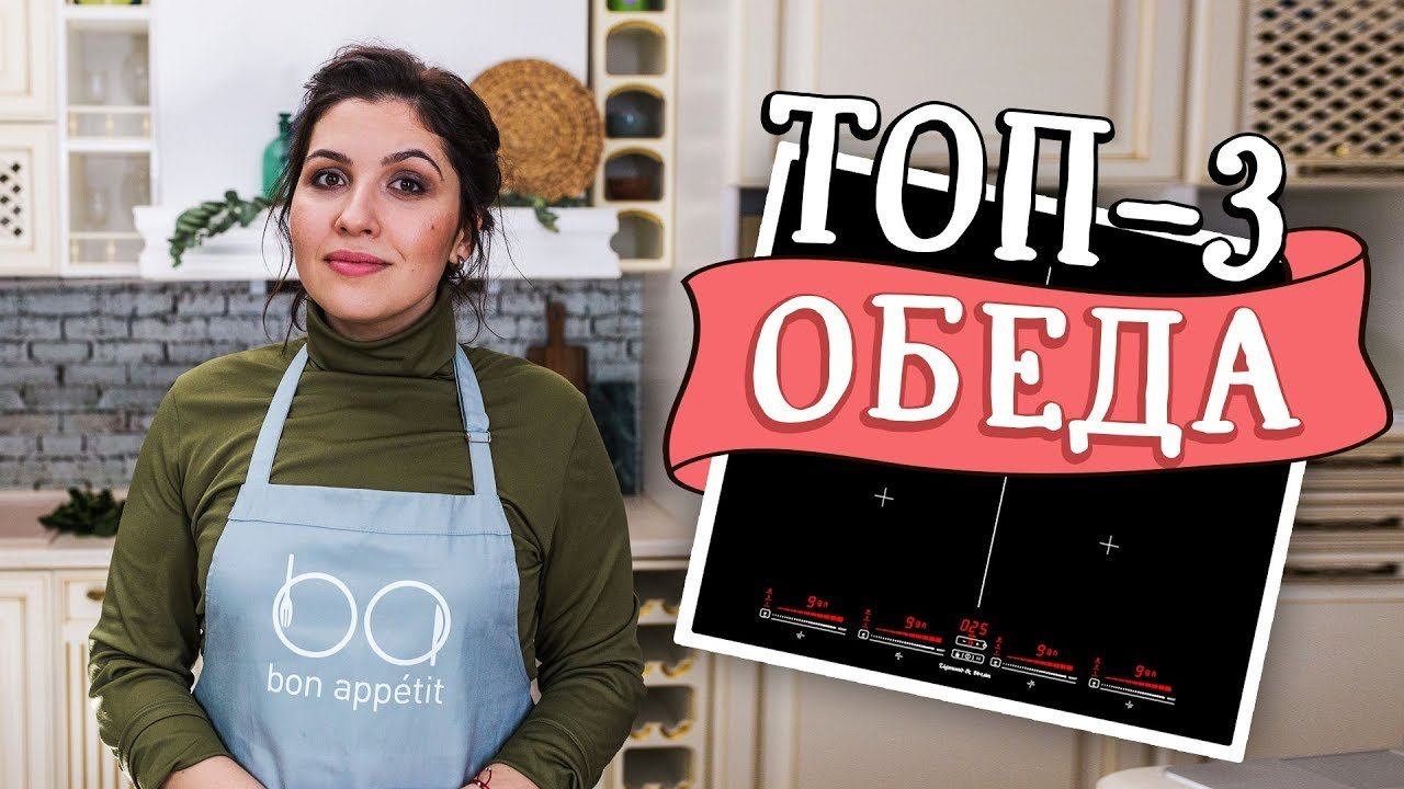 Можно ли быстро приготовить обед, который будет вкусным и сытным? Конечно! В нашем ролике 3 рецепта. Стеклокерамическая варочная панель Zigmund & Shtain CIS 321.60 BX - https://goo.gl/YVqXYJ Паста с курицей и грибами Ингредиенты: Куриное филе — 450 г Чеснок — 3 зубчика Грибы — 200 г Пшеничная мука — 25 г Бульон — 500 мл Сливки 23% — 350 мл Паста — 250 г Шпинат — 50 г Тимьян — 2-3 веточки Твердый сыр — по вкусу Соль, перец — по вкусу Растительное, сливочное масла На 100 г — 184 ккал Приготовление: На смеси масел быстро обжариваем измельченный чеснок с тимьяном. Обжариваем нарезанную курицу до золотистого цвета. Добавляем нарезанные грибы и доводим до готовности. Добавляем муку, тщательно перемешиваем и готовим 1 минуту. Помешивая массу, вводим порциями бульон и сливки. Добавляем соль, перец, пасту и перемешиваем. Доводим до кипения и накрываем крышкой. Готовим 10-12 минут до мягкости пасты. Снимаем с огня, добавляем листья шпината и тертый сыр. Перемешиваем и оставляем на 1-2 минуты. Подаем. Курица с картофелем в медовом соусе Ингредиенты: Куриное филе — 500 г Картофель — 450 г Сливочное масло — 50 г Чеснок — 2-3 зубчика Мед, сок лимона — по 50 мл Соевый соус, перец — по вкусу Куриный бульон — 120 мл Кукурузный крахмал — 15 г С/м овощная смесь — 130 г Растительное масло — для жарки На 100 г — 125 ккал Приготовление: Обжариваем на раскаленном растительном масле ломтики курицы (до золотистой корочки). Добавляем ломтики картофеля и готовим под крышкой около 5 минут, периодически помешивая. Смешиваем до однородности растопленное сливочное масло, измельченный чеснок, мед, сок лимона, молотый перец, соевый соус, бульон и крахмал. Добавляем смесь к курице с картофелем и готовим под крышкой около 8-10 минут, периодически помешивая (до загустения соуса и мягкости картофеля). Добавляем овощную смесь, перемешиваем и готовим еще около 5 минут. Снимаем с огня и подаем. Рис с ветчиной и брокколи Ингредиенты: Бульон — 600 мл Длиннозерный рис — 200 г Брокколи — 170 г Ветчина — 220 г Твердый сыр — 150 г Соль, перец — по вкусу На 100 г — 149 ккал Приготовление: Заливаем промытый рис горячим бульоном, добавляем соль, перец и доводим до кипения. Готовим около 6 минут под крышкой на слабом огне. Добавляем мелкие соцветия брокколи. Не перемешивая, готовим под крышкой 9-10 минут (до готовности риса и капусты). Снимаем с огня, добавляем тертый сыр и перемешиваем, пока последний не расплавится. Добавляем мелко нарезанную ветчину, перемешиваем и оставляем на 1-2 минуты. Подаем. Рецепты Bon Appetit — видеорецепты на каждый день! Мы в социальных сетях: ВКонтакте: https://vk.com/bon Facebook: https://www.facebook.com/bono.appetito Instagram: http://instagram.com/bon_appetito