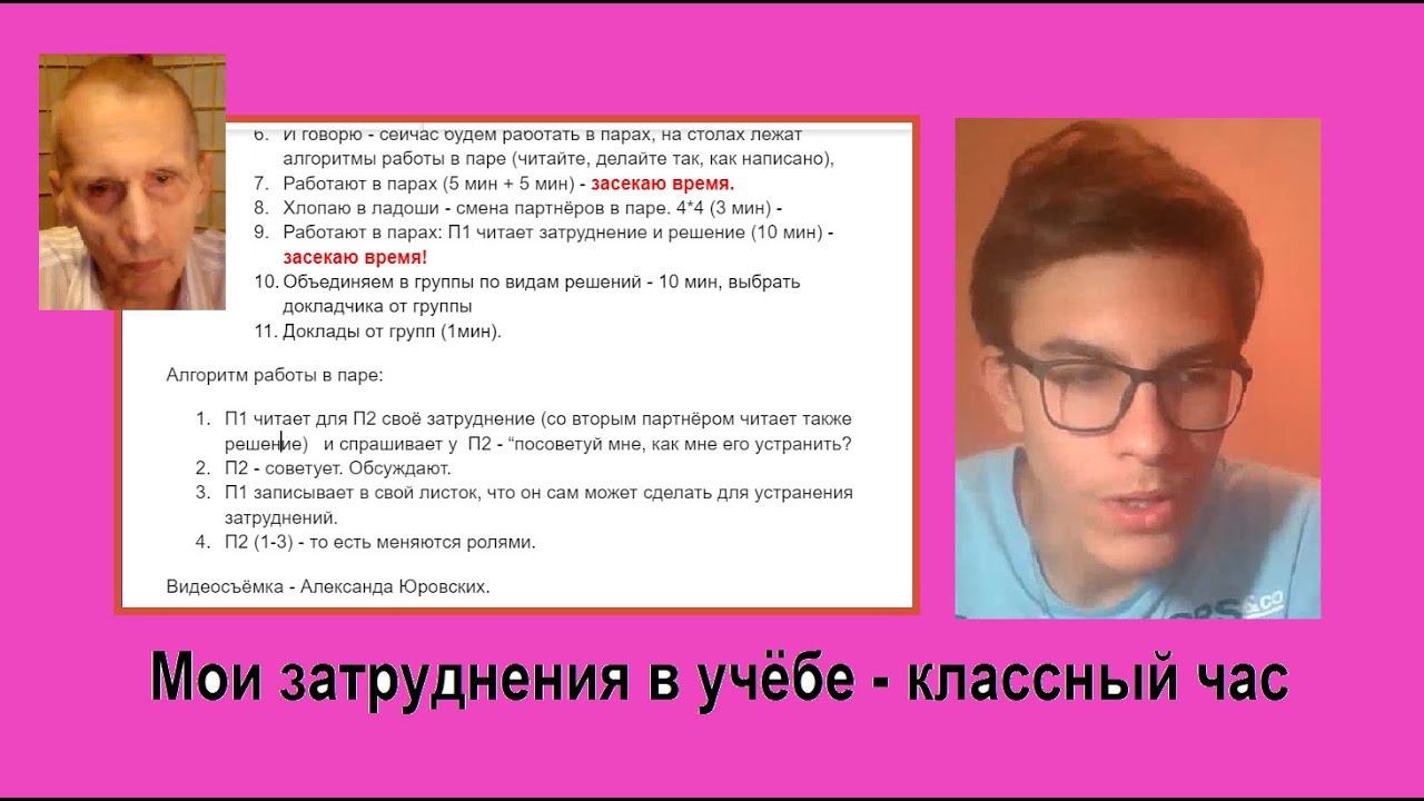 Работа в парах по теме "Мои затруднения в учёбе и что я сам лично могу сделать, чтобы эти затруднения устранить?" - разработали вместе с Громыко Г.О. алгоритм работы учеников в парах. === Дневник Антона по ИОП - https://docs.google.com/document/d/1CGSuVFBbIdHkLGJHQri_EuUCGHzUiC_gzkILLocuIR8/edit?usp=sharing Приглашение в ТГ-группу "Школа Радости" Пространство для рабочей коммуникации между участниками ШР https://t.me/+VfAYiTGUDAJiM2My Гражданское общество - 20.10.2022 1:19:57 - https://youtu.be/XFq8I_fF97o ИОП о гражданском обществе - 13.10.2022 9:22 - https://youtu.be/S9WsrJ-6ED4 Темы ИОП у специалиста Громко Г.О. https://docs.google.com/document/d/1UBNtj_30ZsgOVolAq84tfXPed0XevU_MTU9vjhDrnqQ/edit?usp=sharing === Коллективный субъект - теория и практика, 29.09.2022 Разговор с Дмитрий Соколов, Новая Зеландия - 49:24 - https://youtu.be/eTb3bmHSC3Y Экран качества жизни школы - параметры - https://docs.google.com/document/d/1JJ-dOuT0oUryGTHfYmphZrICNmFhigDiQPCG-1N3mbQ/edit?usp=sharing Разговор с директором шк. 161 - Иванова Д.А. - 45:14 - https://youtu.be/f2obJdckoEc === Оргпроект Школы Радости - https://docs.google.com/document/d/1KZdPcRZjGQRbzcmY9QJ8SD1oZNv7by9pPsp5GyThutc/edit?usp=sharing ТГ-группа Школы радости - https://t.me/+Aj0CY63HU0QxNjQy === Плэй-лист видео по Школа Радости-161" - https://youtube.com/playlist?list=PL949ECk7DvmQUY9mr2a9IVW_j_gHW-OrS === Связаться с Громыко Григорий Олегович можно так - Телеграм - https://t.me/GrigorijGromyko ВКонтакте - https://vk.com/id23067191 Фэйсбук - https://www.facebook.com/grigorij.gromyko ===