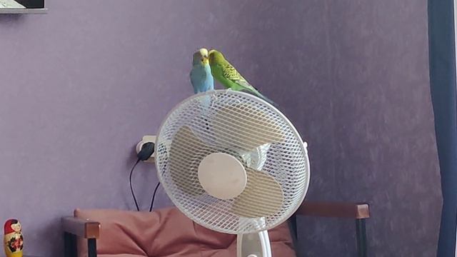 Птичкины красавчики! на вентиляторе спорят!