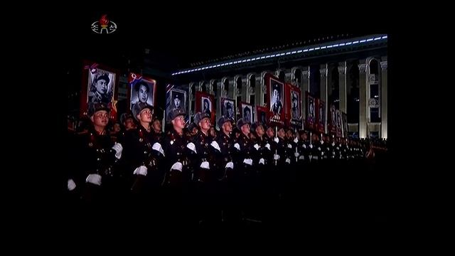 флаг страны на параде 75 лет Северной Корее