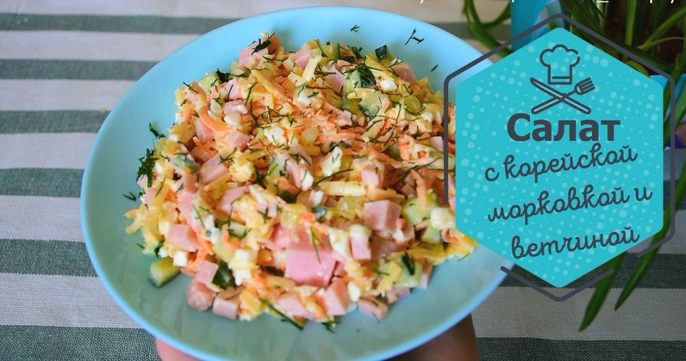 Салат с корейской морковкой и ветчиной. Я уверена, что после приготовления этого салата вы полюбите его так же как я! Смотрите видео и записывайте скорее рецепт. .............................................................................................................................................................................. Не забывайте подписываться на канал "Лучшие Рецепты" и ставить лайк! Так вы не пропустите вкусные рецепты с моего канала.