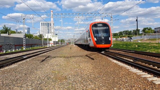 диаметральный поезд Иволга 2.0 ЭГ2Тв-036 Лобня-Одинцово и ЭС1П-023 скоростной поезд N-721 Москва-Минск 25 мая 2021 года в 16:08 перегон Фили - Кунцево 1 белорусское направление Московская железная дорога Ivolga of diameter EG2Tv-036 and Lastochka in Minsk ES1P-023 diametrical train Ivolga 2.0 EG2Tv-036 Lobnya-Odintsovo and ES1P-023 high-speed train N-721 Moscow-Minsk May 25, 2021 at 16:08 section Fili - Kuntsevo 1 Belorusskoe direction Moscow railway
