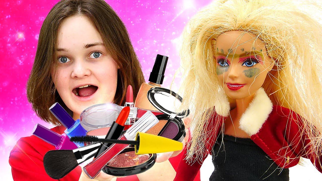 Видео прикол – Кукла Барби в Салоне красоты! Barbie в видео для девочек. Одевалки игры макияж