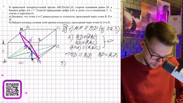 В правильной четырёхугольной призме ABCDA1B1C1D1 сторона основания равна 20, а боковое ребро - №