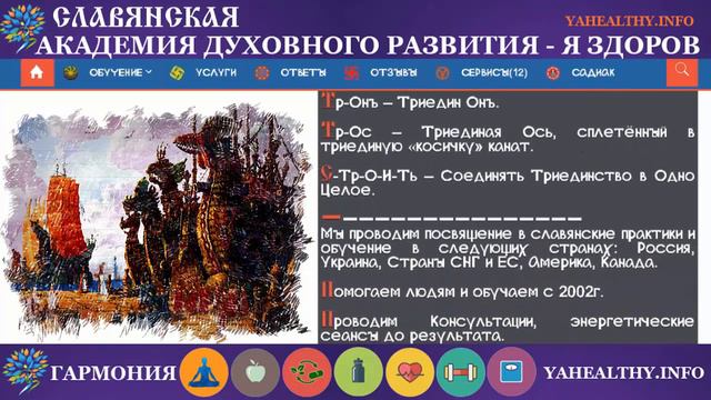 🔥 Доброго времени, друзья! С Вами Ведагоръ. Сегодня, продолжая традицию, продолжаем знакомиться с глубинными образами древних рун. . ТРИГЛАВЪ (т, тр). Союз 3-х Богов. Триглавы трех миров, Богов покровителей. Есть также понятие тройственный союз. Тр-Онъ – Триедин Онъ. Тр-Ос – Триединая Ось, сплетённый в триединую «косичку» канат. С-Тр-О-И-Ть – Соединять Триединство в Одно Целое... . Страница Руны - http://www.yahealthy.info/e/slavyanskij-blog/drevne-slavyanskaya-bukvica/drevleslovenskij-yazik/harijskaja-karuna/runa-triglav/ . Мудрости! ➖➖➖➖➖➖➖➖➖➖➖➖➖➖➖➖ ✊ Поддержать нас материально: 💰 Donation - http://www.yahealthy.info/blago.php 👩🏫 БЛАГОДАРНОСТЬ ПО ДУШЕ. 📢 Поделитесь этим контентом со своими друзьями. Возможно, они будут вам благодарны, а на земле появится одним счастливым человеком больше 🙂 🔅 Поблагодарить: Лайк /Репост/Подписка. ➖➖➖➖➖➖➖➖➖➖➖➖➖➖➖➖ 👍 Подписывайтесь на канал и аккаунты в соц. сетях. 🤝 МЫ В СОЦИАЛЬНЫХ СЕТЯХ - http://www.yahealthy.info/e/vedagor-i-radomira-osnovateli-akademii-duxovnogo-razvitiya/#soc Мы Благо Дарны, что вы с нами! Света, Любви, Гармонии! ➖➖➖➖➖➖➖➖➖➖➖➖➖➖➖➖ 👇 💯% Славянская Академия ДУХовного РАзвития - Я Здоров http://www.yahealthy.info/e/ Обучение: Украина, Европа, СНГ, США, Канада, во всем мире с 2002 года. ➖➖➖➖➖➖➖➖➖➖➖➖➖➖➖➖ . ✅ Обучение лично или дистанционно, не имеет значения где Вы находитесь в каком городе, стране, континенте! Если есть вопросы обращайтесь . ✅ Это Знания наших Предков! Хорошо восстанавливается связь с Предками! . ✅ Которые помогают не только исцелить но и гармонизировать человека с окружающим пространством и природой. . ✅ Приглашаем на обучение! Ты уже готов! . Света, Любви, Гармонии! #харийскаякаруна #древниеруны #славянскиеруны
