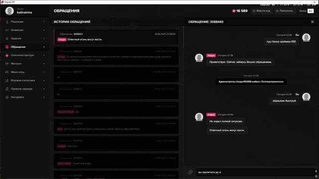 Написать в поддержку