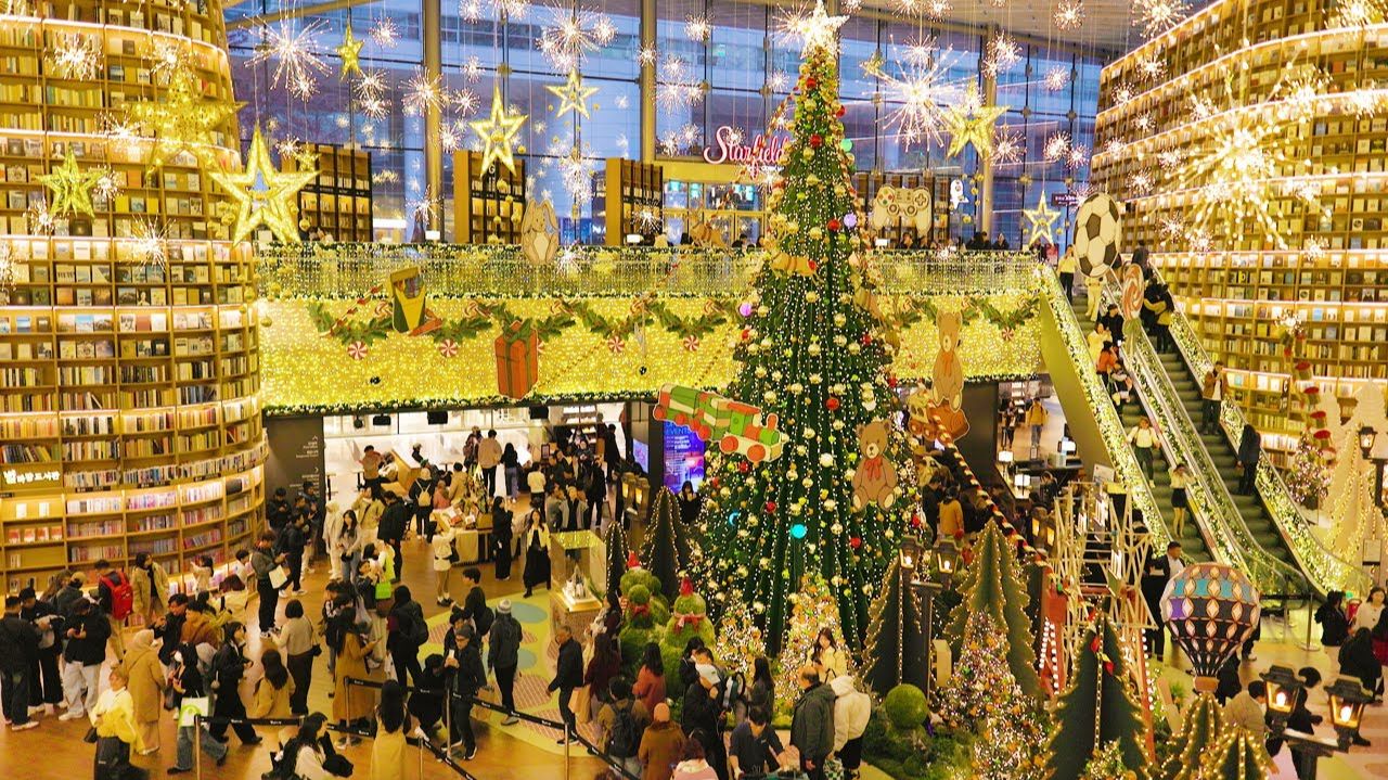 역대급 한국 크리스마스 트리에 외국인들도 탄성 연발! 코엑스 별마당 도서관 크리스마스 트리! . 서울여행워커. 보는 순간 입이 쩍 벌어지는 역대급 초호화 트리에 감탄사를 연발하는 코엑스 별마당 도서관 크리스마스 트리입니다. 영상속에서 만나 보시죠. The moment you see it, your jaw will drop in awe at this ultra-luxurious tree. This is the COEX Starfield Library Christmas tree. Let's take a look in the video.