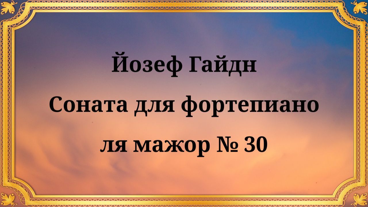 Йозеф Гайдн Соната для фортепиано ля мажор № 30