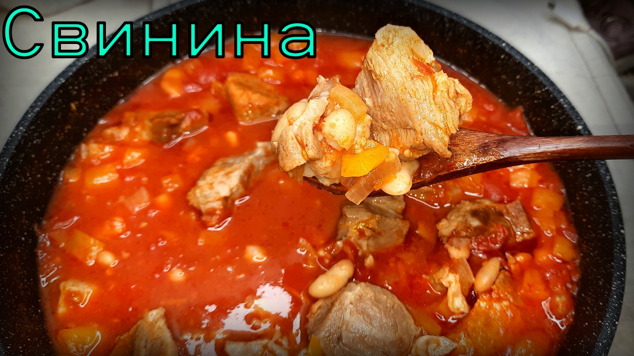 В этом видео приготовим с Вами простой и вкусный рецепт тушеного мяса с овощами и фасолью. Отличная идея для прекрасного ужина. Нежное, сочное, разваливающееся мясо, не оставит Вас равнодушными. Как приготовить сочное и мягкое мясо, смотрите в этом видео. Простые рецепты, быстрые рецепты, вкусные рецепты, всё это и не только, смотрите на моём канале. Для приготовления нам понадобится: Свинина 1кг. Фасоль консервированная 1б. Помидор 350гр. Лук 300гр. Морковь 100гр. Чеснок 4зуб. Томатная паста 1ст.л. Мускатный орех 1/4ч.л. Соль 0.5ч.л.(для мяса) Перец горошком 10шт. Растительное масло Соль по вкусу Всем мира и добра!