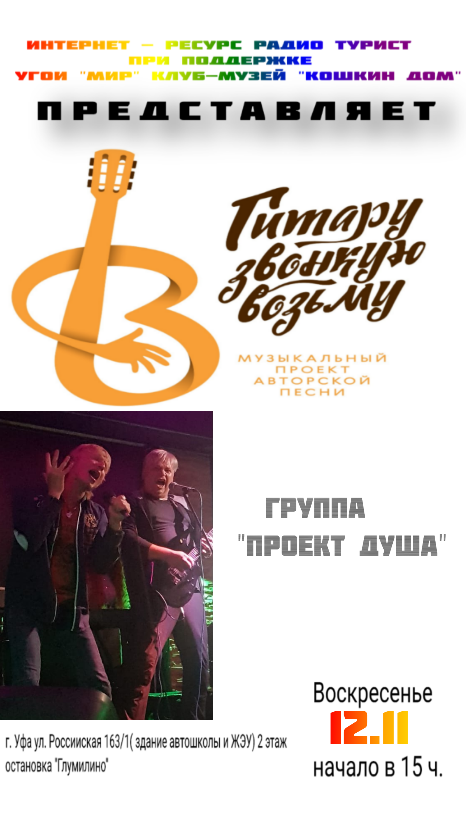 Концерт музыкального проекта "Гитару звонкую возьму". Группа "ПРОЕКТ ДУША". 12.11.23г.