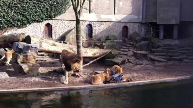 Львы поймали вкусный обед прямо у себя в клетке