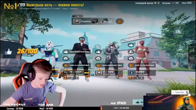 Поддержать стримера (донат) https://www.donationalerts.com/r/sukharik_ 1. Игра 1 на 1 - 300 руб. (карта лоби с вас) 2.Завершить стрим - 3000 руб (обязательно упомянуть в донате) 3. Продлить стрим на 30 мин - 250 руб. (обязательно упомянуть в донате) 4. Создать кастомку - 500 руб. (обязательно упомянуть в донате) 5. В др -500 руб. ( обязательно упомянуть в донате ) ПРАВИЛА НАШЕГО ЧАТА (Sukharik PUBG) 1. Писать на общедоступном языке: Русском 2. Относится уважительно друг к другу, модераторам и стримеру. За оскорбление стримера или участников чата или модераторов СТРОГО В БАН !!! 3. Писать большими буквами запрещено в этом чате ! 4. Не спамить в чат больше 3 раз за 5 мин 5. Не писать про политику.СТРОГО В БАН !!! Где меня еще можно найти и связь со мной ТЕЛЕГРАММ https://t.me/SukharikPubg TikTok https://vt.tiktok.com/ZSdonshAT/?k=1 INSTAGRAMM https://www.instagram.com/p/Cazi618L-c-/?igshid=MDJmNzVkMjY= ЧАСТО ЗАДАВАЕМЫЕ ВОПРОСЫ: В каком городе живешь ? - Москва Сколько лет - 16 лет Как зовут ? - Матвей Сколько лет играешь в PUBG ? - 4 года Устройство: IPAD 8 поколения Играю в 4 пальца Мой айди в PUBG 5259956700 #стрим #СтримPubg #SukharikPubg #СтримПабг #сухарик