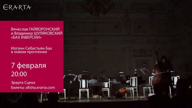 7 февраля 2016 г. музыканты Вячеслав Гайвонский и Владимир Шуляковский выступят в Эрарте с авторским проектом «Бах inверсии», вдохновленным творчеством Иоганна Себастьяна Баха. Подробности и билеты онлайн http://www.erarta.com/ru/calendar/events/detail/6f3e989e-bf45-11e5-a394-8920284aa333/