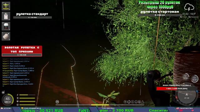 Поддержка донатом https://www.donationalerts.com/r/kalyamba11 Альтернативный донат https://new.donatepay.ru/@1032463 Если стрим лагает,смотри стрим на трово https://trovo.live/s/Kalyamba_na_Ribalke Мой ВК - https://vk.com/kalyantv НИК в игре kalyan11 НАШ ДИСКОРД СЕРВЕР https://discord.gg/mSbnTJK8TB Заказ водоема на 1 час - 500р ( весь стрим 2500р ) Модерка на канале 1100р ( каждая следующая на 100р больше) Озвучка доната на 40р,50р,100р,200р,300р,500р,1000р ✅Призы в рулетке СТАНДАРТ : ✔ катушка "РАПТОР 40" ✔ катушка "Оверлорд 88" ✔ катушка "Full metal 60" ✔ Среднелегкий спиннинг "Inspiration S78Ml" ✔ Тяжелый кастинговый спиннинг "Барракуда" ✔ Морское Донное удилище ✔ прем ( 3, 7, 30 дней) ✔ золото ( 1, 3, 5, 10, 20 ,50) ✔ билет на море ( 1, 3, 5 дней) ✔ голд наживка и др. ✅Призы в рулетке "СТАРТОВАЯ" ✔ катушка "silver80" ✔ катушка "Full metal 60" ✔ катушка "Черный калибр" ✔ катушка "Протон" ✔ катушка "Нарга 6000" ✔ Набор Фидерист и спинингист ✔ Карповик Фортуна ✔ фидерные удилища ✔ прем, золото, алкашка, наживки и тд Вечный ТОП ПОДДЕРЖКИ (11.05.2024) 1. Dimon_pokemonchik 119 784 2. Interceptor 75 508 3.Skreb79 71 261 4. une personne 68 619 5. Нарвал77 31 550