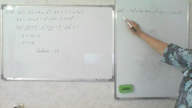 Решение 9 задания 25 , 26 варианты. Математика ОГЭ - 2024. 40 вариантов Ф. Ф. Лысенко, С. О. Иванова Решите уравнение: 25в) 4x^2 - 5x + 9 = x^2 - 6x + (- 7 +3x^2); 26в) - 5x^2 + 7x - 10 = - x^2 + 5x - (3 + 4x^2)