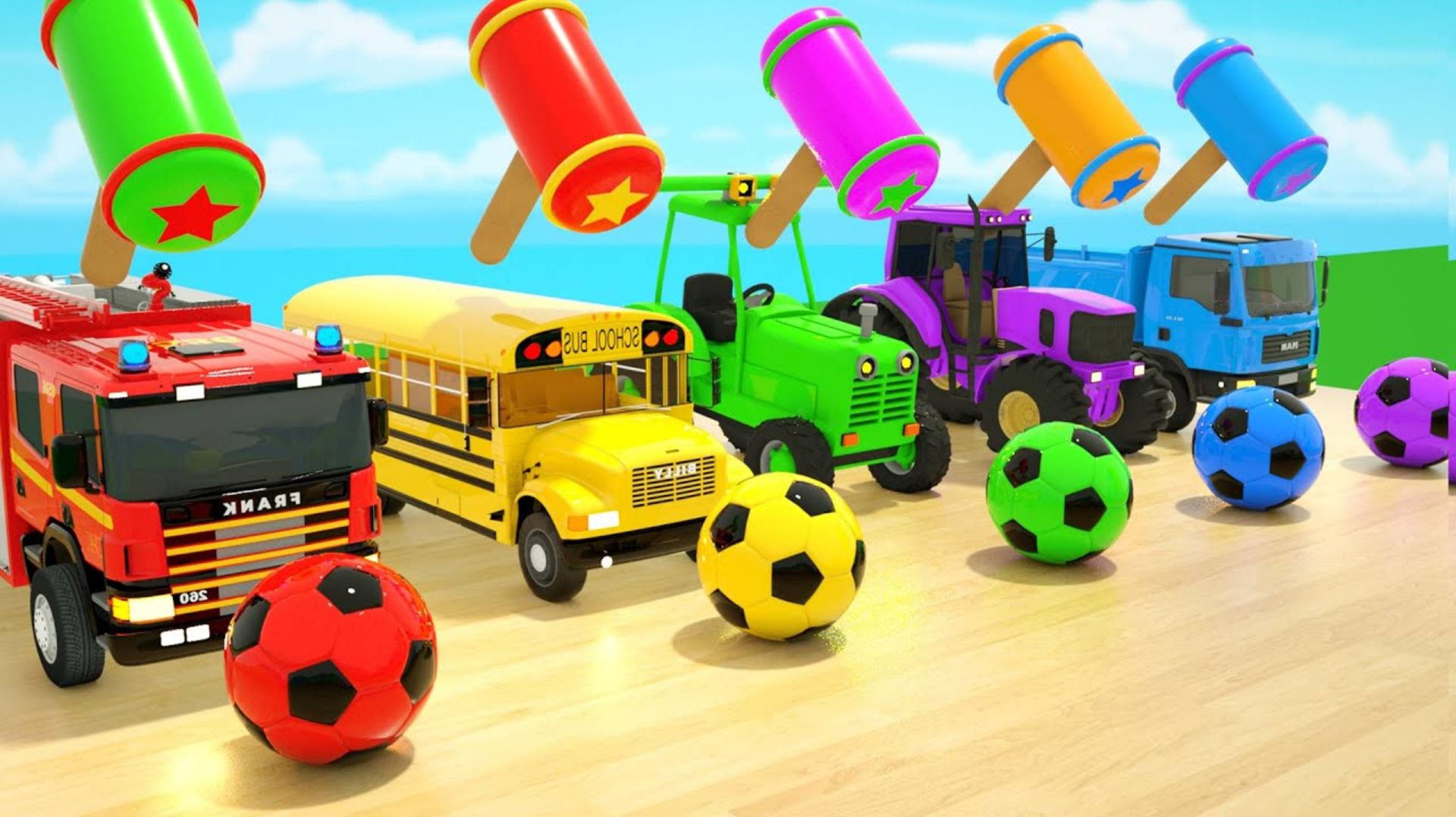 Веселые машинки! Грузовики, автобус и трактор! Песенка маленькой акулы! Мультики для малышей!