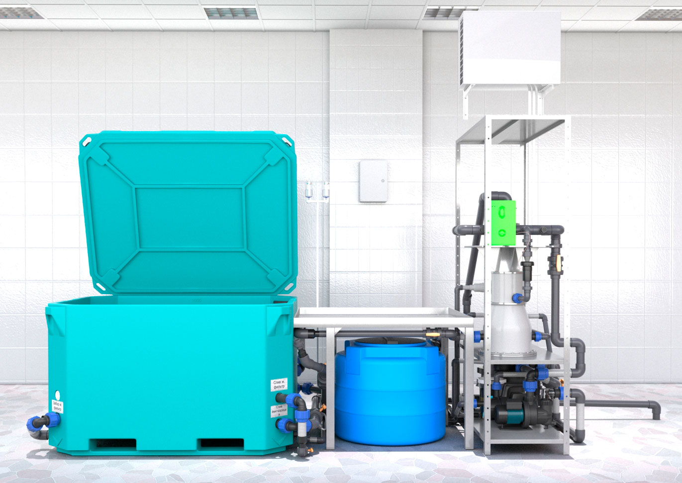 Промышленная аквасистема ПА-1000 предназначена для долговременной передержки живых гидробионтов в искусственной водной среде. Имеет общий объем воды 1000 литров и рассчитана на максимальную загрузку – 300 кг живой продукции. Скорость водообмена и очистки воды в аквасистеме составляет 4-5 циклов в час. ПА-1000 имеет мощное двухконтурное горизонтально-нисходящее течение. Фильтр грубой очистки, абсорбентный фильтр, Скиммер с отводом нечистот в канализацию, система многоэтапного обогащения воды кислородом (форсуночная и пузырьковая аэрация, химическое оксидирование), трехуровневое обеззараживание (ультрафиолетовая проточная стерилизация воды; озонация; капельное обеззараживание), система перелива и долива с резервной емкостью, блок охлаждения воды и встроенный гидропылесос. Промышленная аквасистема ПА-1000 – надежный фундамент для вашего бизнеса! www.torus-aqua.expert