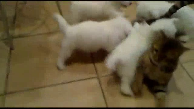 Стая щенят против кота