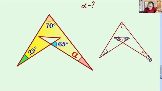 Найти угол альфа по величине заданных углов.